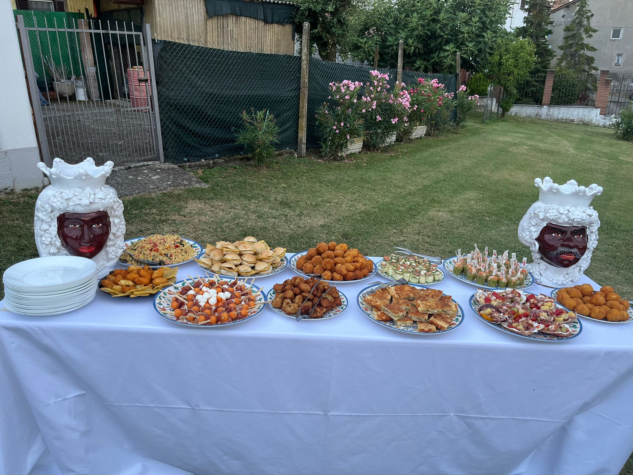 Oltre ad offrire un servizio completo, dall’ideazione del menù alla produzione propria del cibo, l’azienda si occupa, degli allestimenti di luci e location, fornitura del personale, preparazione sia presso il laboratorio delle pietanze o cooking in loco, allestimento con decorazioni floreali e non, illuminazione, tovagliato, stoviglie e bicchieri, attrezzature professionali, arredi con tavole, sedie coperture, gazebo, ombrelloni.